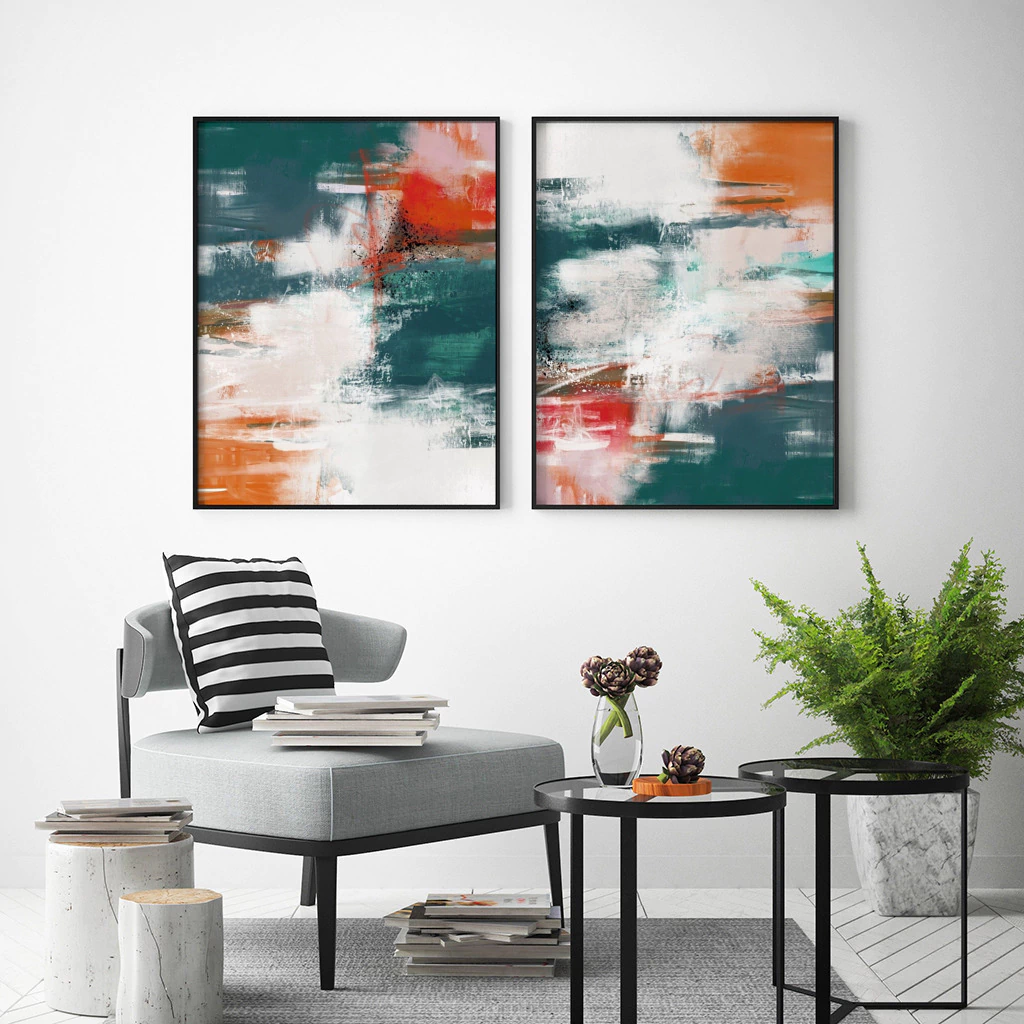 Composição com 2 Quadros Decorativos - Dance Of Colors No. 01 + 02 por Karine Tonial Grimm