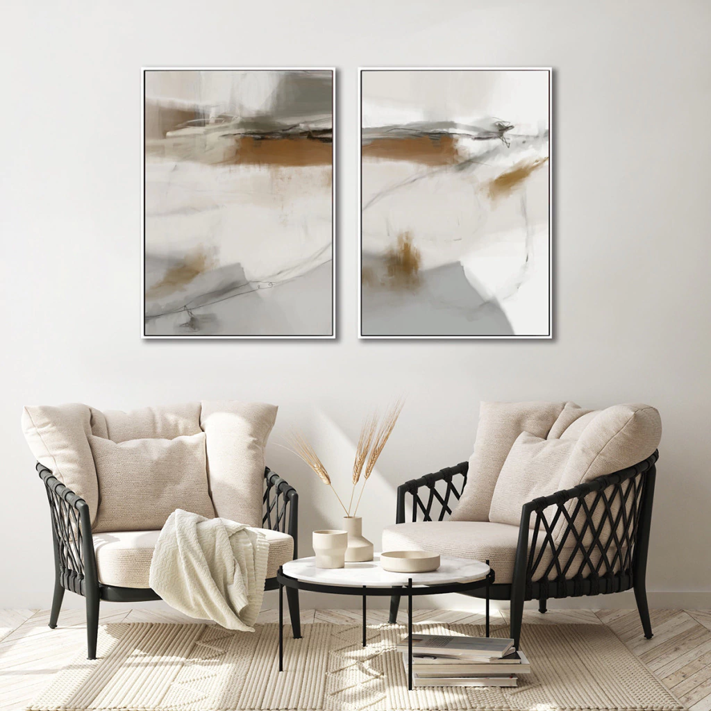 Composição com 2 Quadros Decorativos - End of beginning abstract set No. 03 + No. 04 por Karine Tonial Grimm
