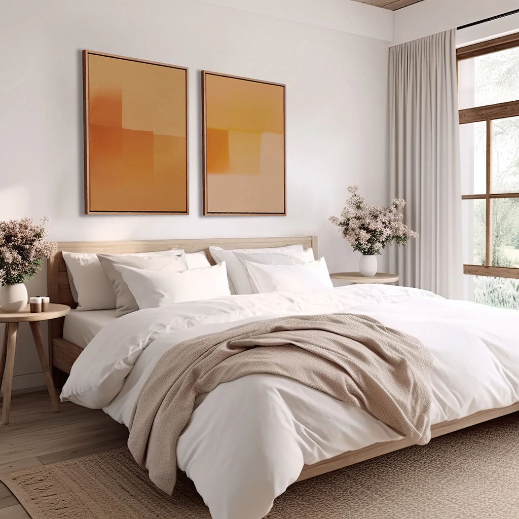 Composição com 2 Quadros Decorativos - Honey bee orange abstract set No. 2 + No. 1 por Karine Tonial Grimm