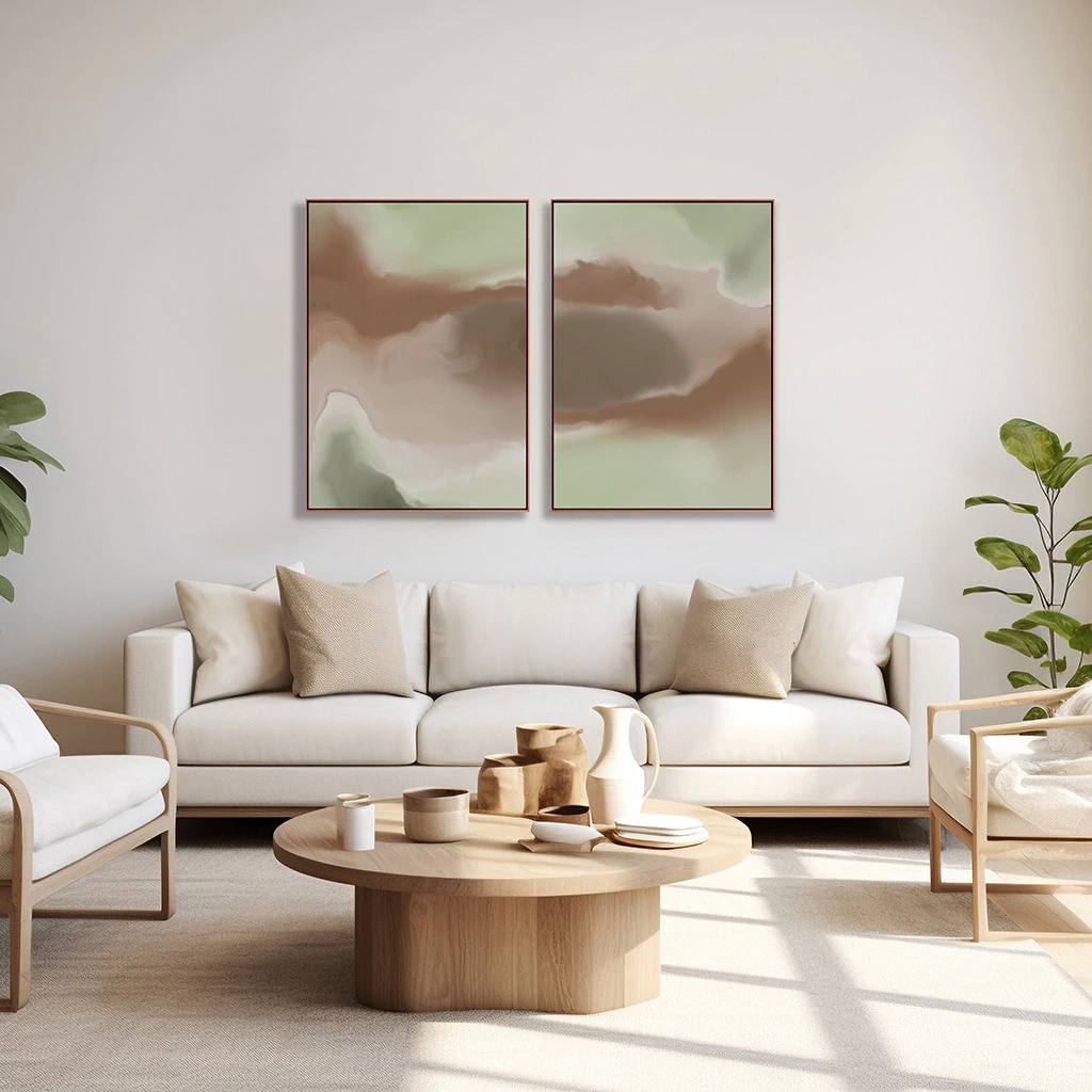 Composição com 2 Quadros Decorativos - Remembering - Neutral abstract set No. 1 + No. 2 por Karine Tonial Grimm