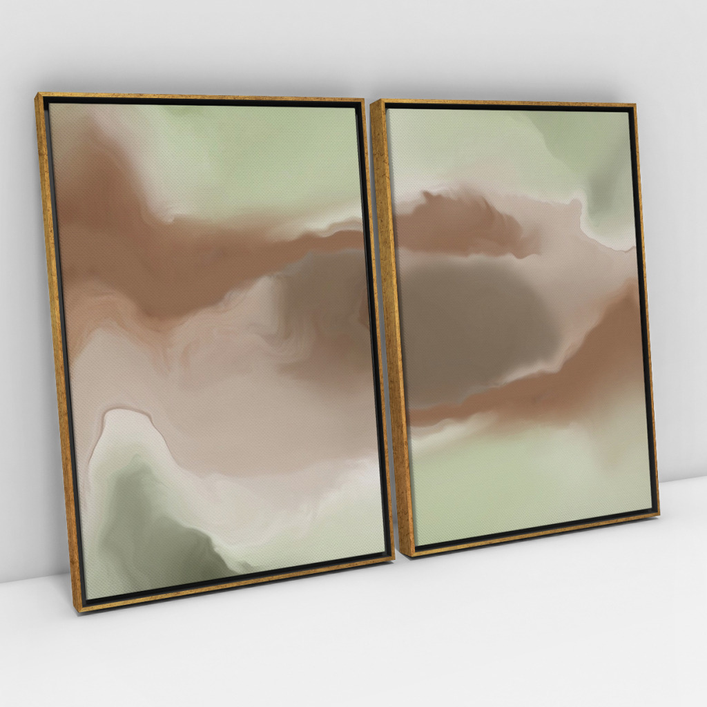 Composição com 2 Quadros Decorativos - Remembering - Neutral abstract set No. 1 + No. 2 por Karine Tonial Grimm
