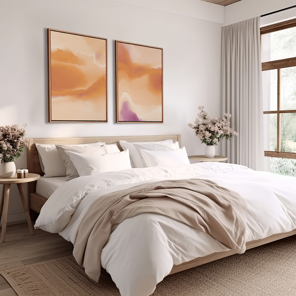 Composição com 2 Quadros Decorativos - Skyward - Orange abstract set No. 1 + No. 2 por Karine Tonial Grimm