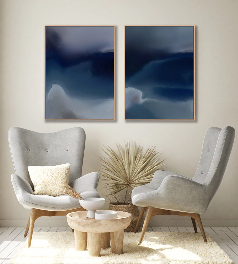 Composição com 2 Quadros Decorativos - The answer - Blue abstract set No. 1 + No. 2 por Karine Tonial Grimm