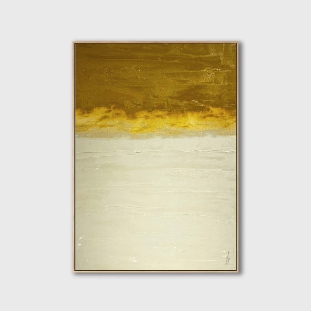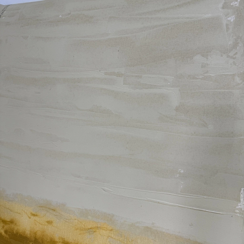 Serene Horizon: Nesta obra, a tela é habilmente dividida em três áreas, cada uma revelando uma paleta única de cores. Os tons de bege e dois tons de azul se entrelaçam, criando uma harmonia visual que evoca serenidade e equilíbrio. A adição de textura sutil acrescenta uma dimensão tátil, convidando a explorar a superfície e aprofundar a conexão com a peça. 'Serene Horizon' é mais do que uma composição visual; é uma experiência sensorial que busca capturar a calma de um horizonte sereno.